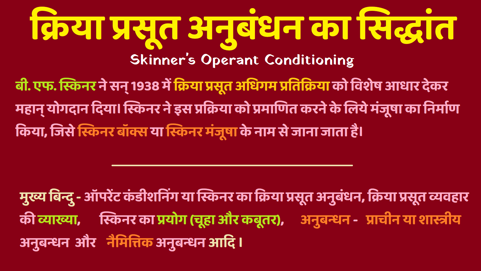 ऑपरेंट कंडीशनिंग या स्किनर का क्रिया प्रसूत अनुबंधन (Skinner’s Operant Conditioning)