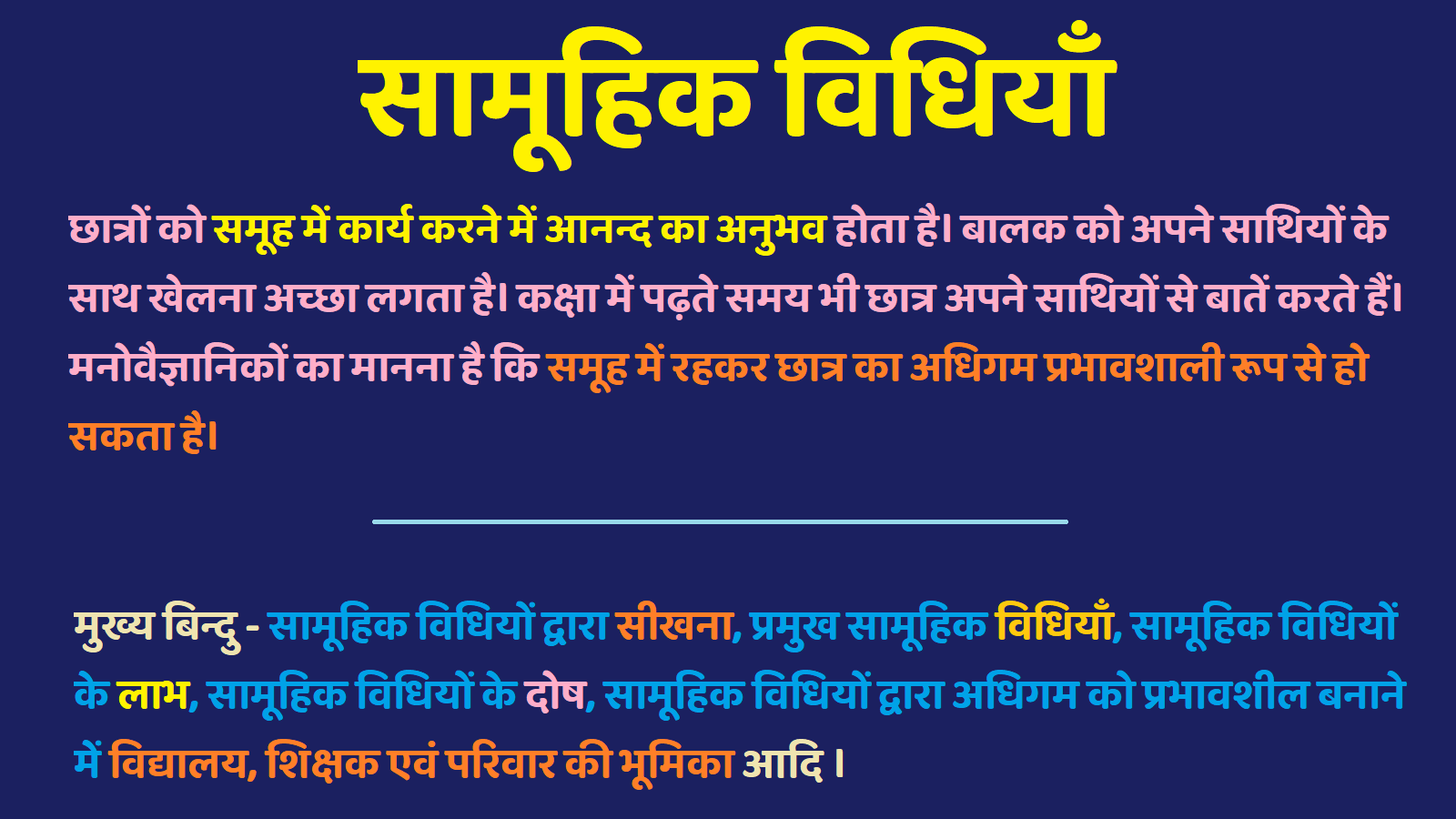 सामूहिक विधियों द्वारा सीखना (Learning by group methods)