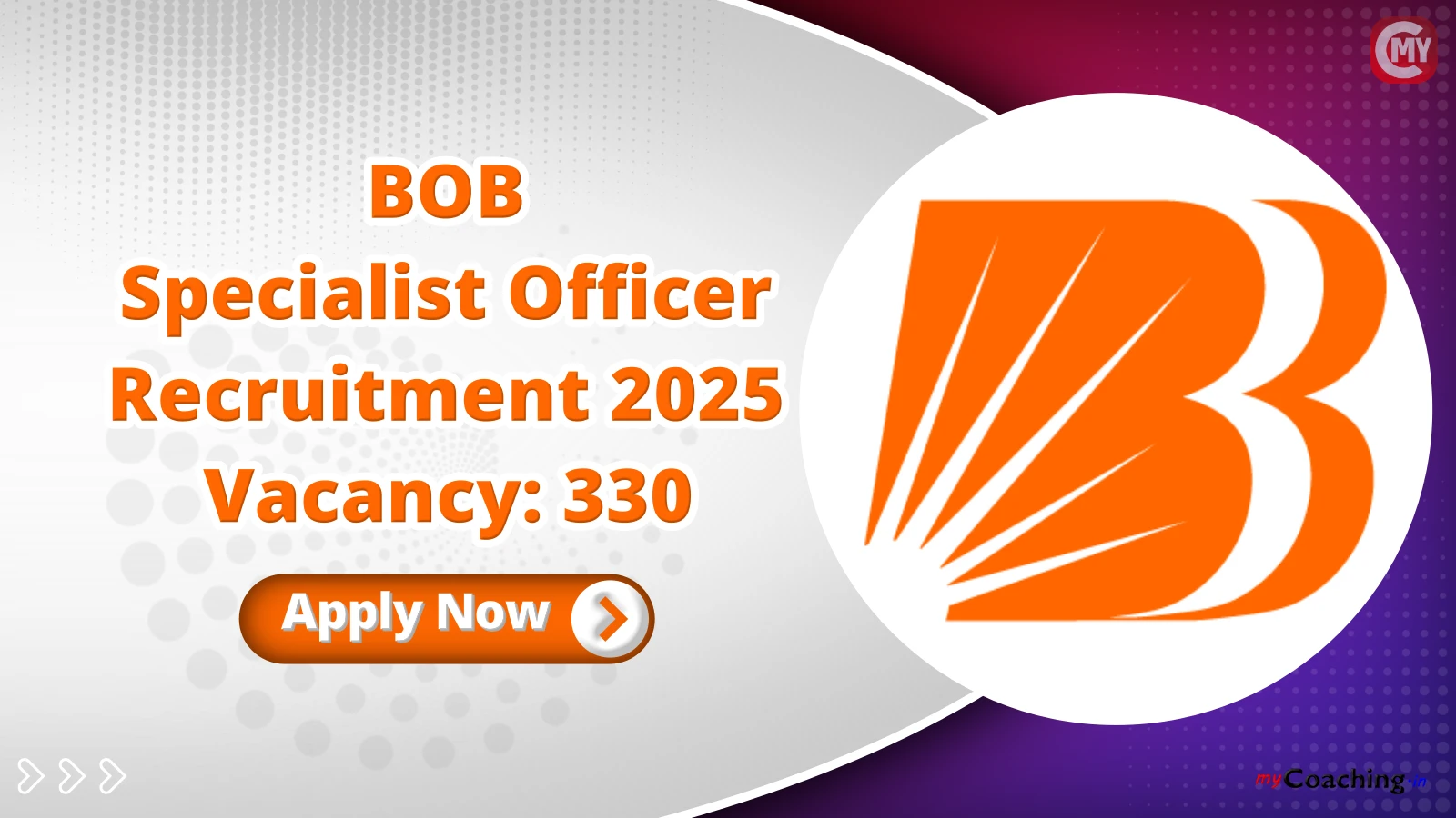 The Bank of Baroda has commenced its Specialist Officer (SO) Recruitment 2025 for 330 fixed‑term contractual posts across various domains including Digital Banking, MSME Sales, Risk Management, and Cyber Security. Interested and eligible candidates can apply online from 30 July 2025 to 19 August 2025. Age criteria vary by post (typically 22–45 years). This is an excellent opportunity for professionals with relevant qualifications and experience. Full details and official links are provided via the Sarkari Result section on My Coaching.